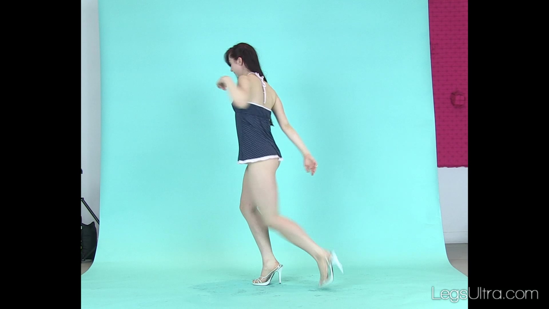 Juliette is a natural beauty in her short blue dress and heels. Her legs are long, slender, and silky smooth. She poses in various positions showing off her dance poses.