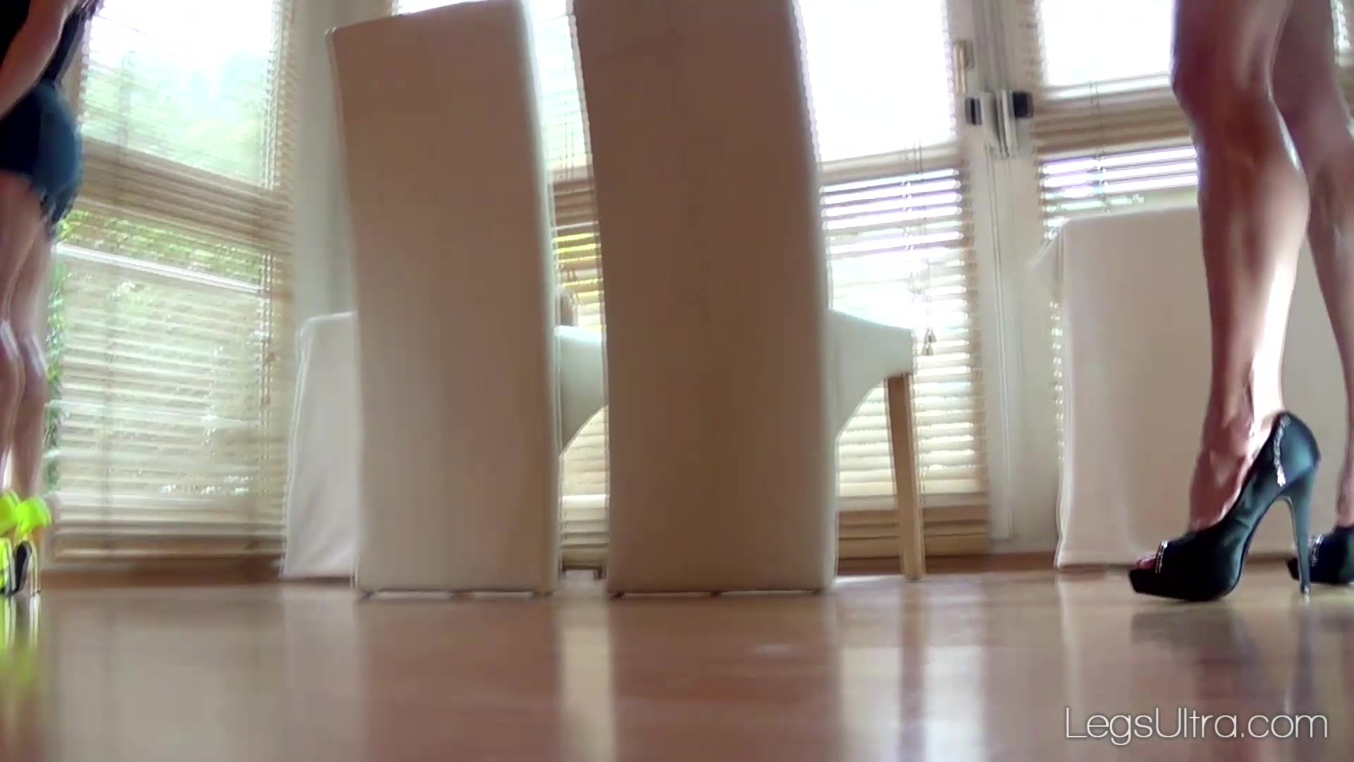 Daniela & Alena show off their incredibly oiled and sculpted legs in tall, thin heels. They start off with their calves facing the camera as the manuever slowly, crossing and rubbing each other's stems. They pace across each other's paths and continue to caress legs.